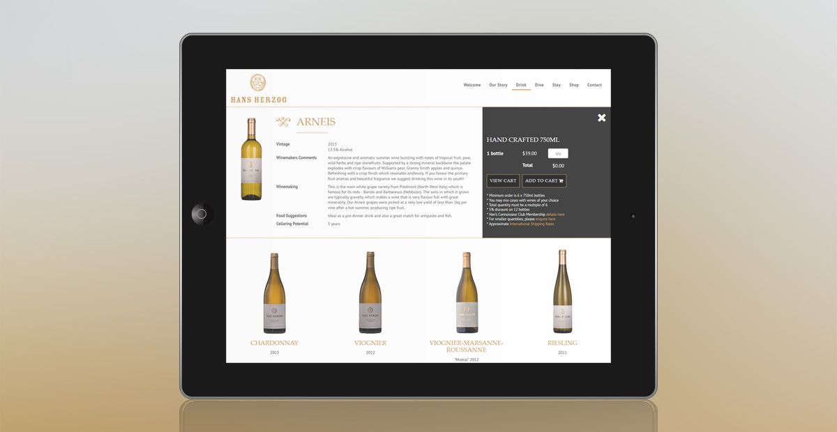 As one of the foremost estates in the country, Hans Herzog’s team wanted a website that would tell their great story and show their passion for good wine and food. Functionality included a shop section to allow visitors to view and order wine.
